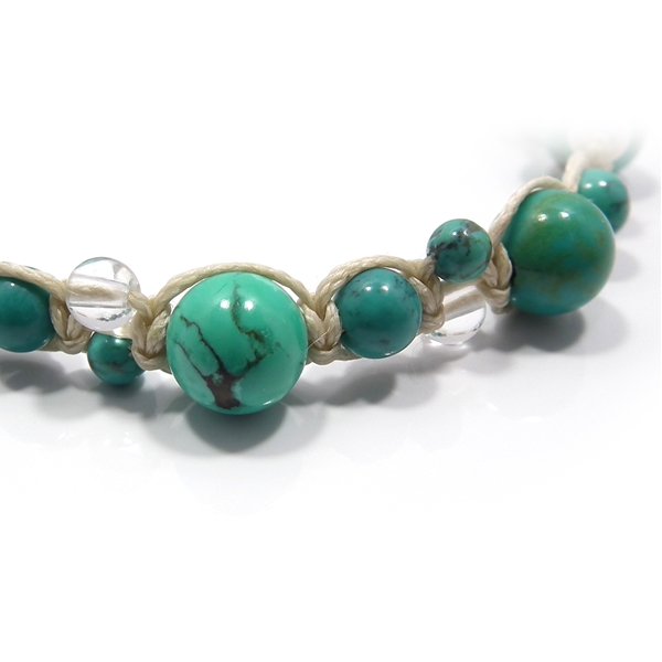 ターコイズ×水晶 天然石 編み込みブレスレット