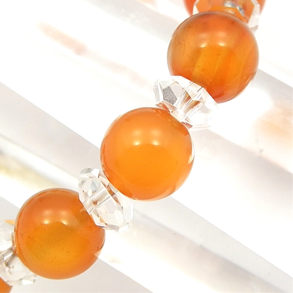 カーネリアンに、ボタンカット水晶を組み合わせたブレスレットです。艶やかなオレンジ色のなカーネリアンに、カット水晶がきらきら光ります。