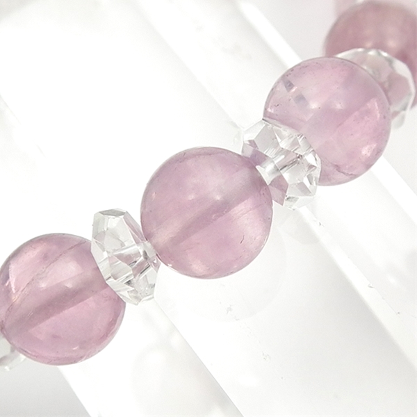 ピンクフローライトに、ボタンカット水晶を組み合わせたブレスレットです。紫がかった薄いピンク色のフローライトに、カット水晶がきらきら光ります。