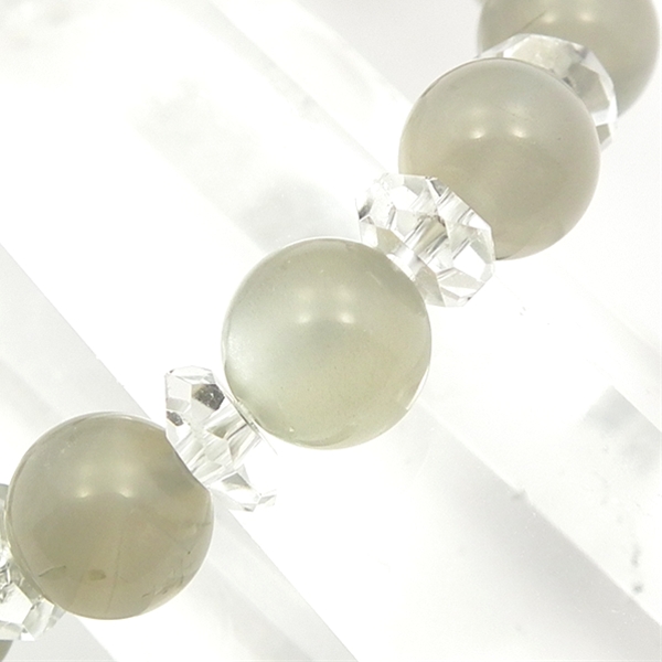 グレームーンストーンに、ボタンカット水晶を組み合わせたブレスレットです。黒みの強いムーンストーンに、カット水晶がきらきら光ります。
