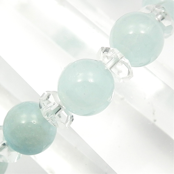 アクアマリンに、ボタンカット水晶を組み合わせたブレスレットです。クリーミーな水色のアクアマリンに、カット水晶がきらきら光ります。