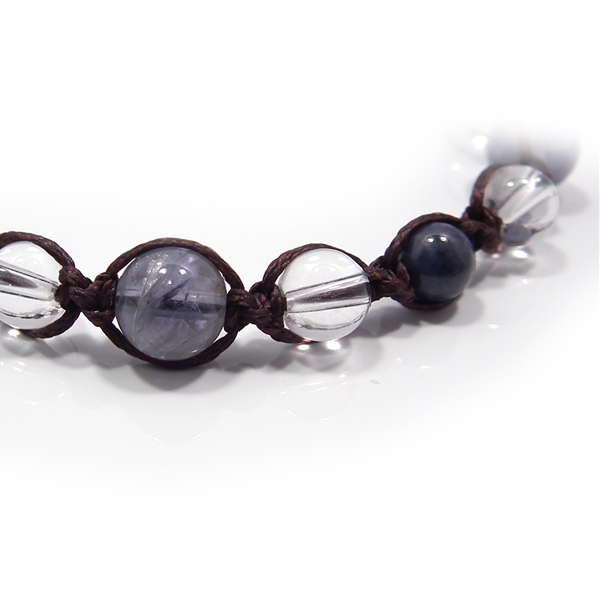 アイオライト×サファイア×水晶 天然石 編み込みブレスレット