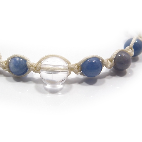 カイヤナイト×タンザナイト×水晶 天然石 編み込みブレスレット