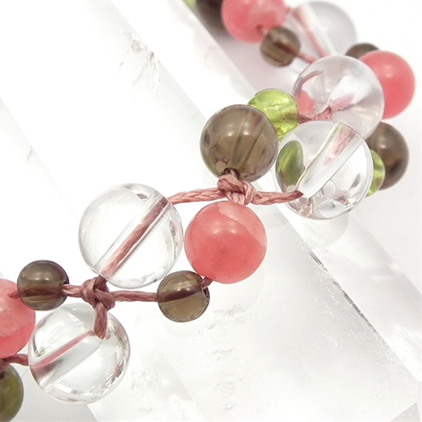 インカローズ×スモーキークォーツ×ペリドット×水晶 天然石 編み込みブレスレット