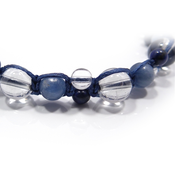 カイヤナイト×ラピスラズリ×水晶×オーラクォーツ 天然石 編み込みブレスレット