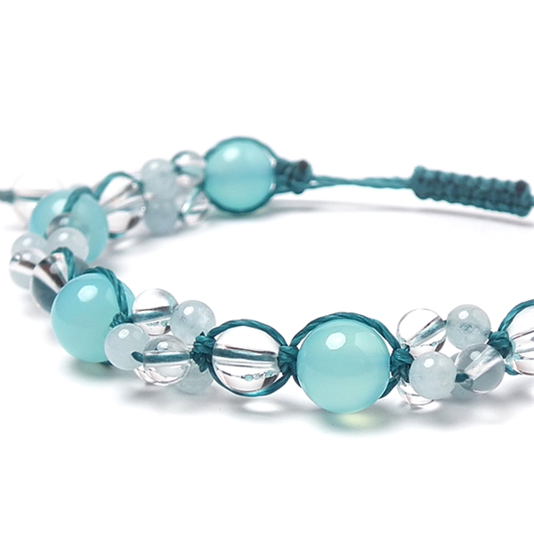 シーブルーカルセドニー×アクアマリン×水晶 天然石 編み込みブレスレット