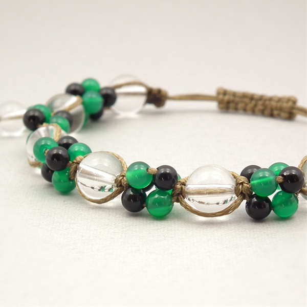 グリーンアゲート×オニキス×水晶 天然石 編み込みブレスレット