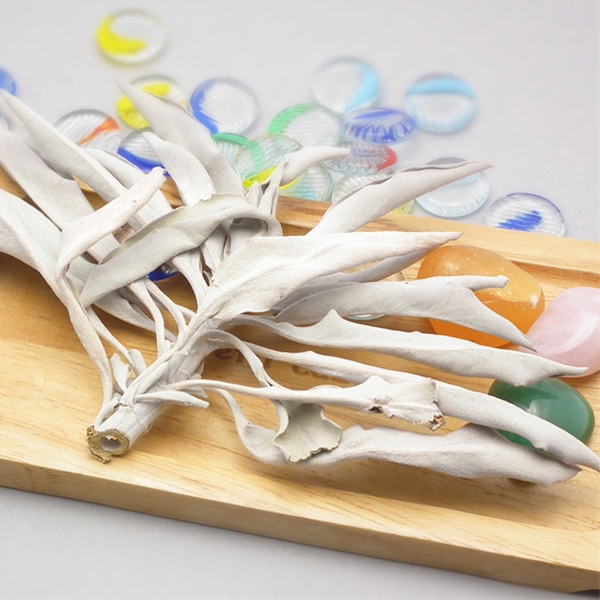 ホワイトセージは、ネイティブアメリカンが浄化に使ってきた神聖なハーブです。ホワイトセージ自体に 浄化のパワーが秘められていると同時に、ホワイトセージの煙が強力な浄化力を持つと信じられてきました。パワーストーン、天然石の浄化、お部屋の空間をリフレッシュする際にご活用ください。【浄化方法】1. セージの葉を取り、火を付けます。2. 火が付いたら、すぐに振って炎を消し、煙だけが出るようにします。3. セージをお皿などの上に乗せてください。4. 浄化したいパワーストーンを煙にくぐらせます。※セージの葉が燃え尽きるまで、数分かかります。パワーストーンの浄化後燃え尽きるまで、お部屋の浄化などにお使いください。天然のため取れる時期によって、品質や乾燥具合に違いがございます。ご了承ください。