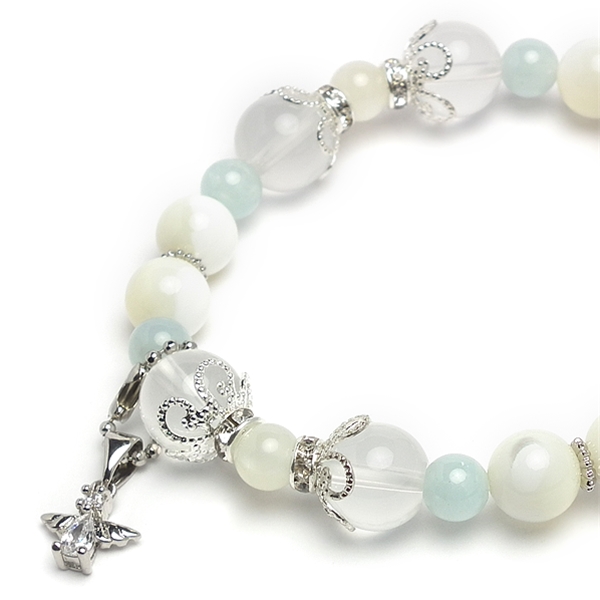 シルバームーンストーン×アクアマリン×マザーオブパール 天然石 ブレスレット