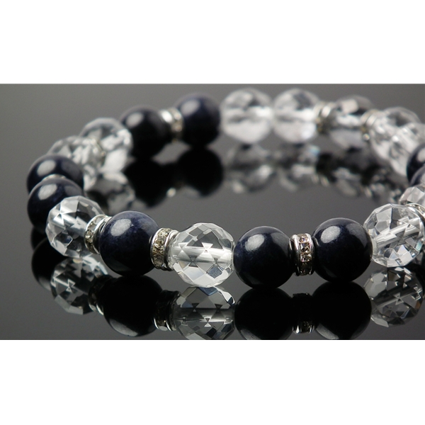 • サファイア×水晶×オーラクォーツ 天然石 ブレスレット