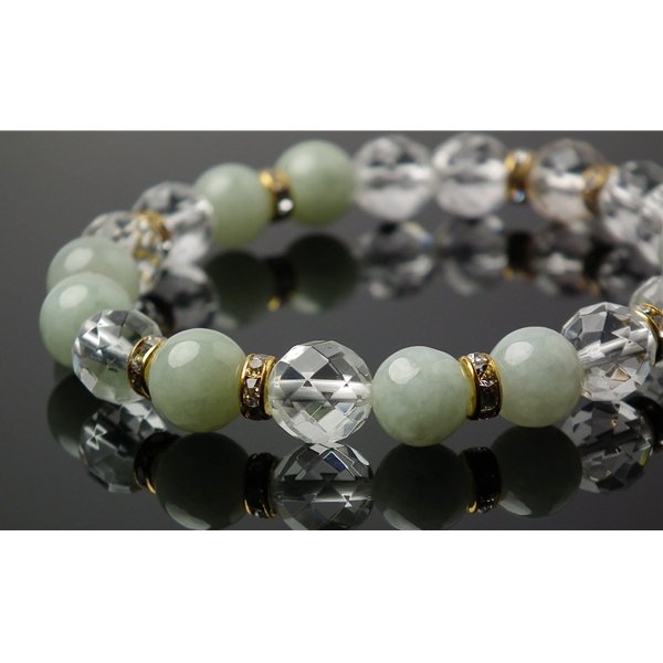 • 翡翠×水晶×シャンパンカラークォーツ 天然石 ブレスレット