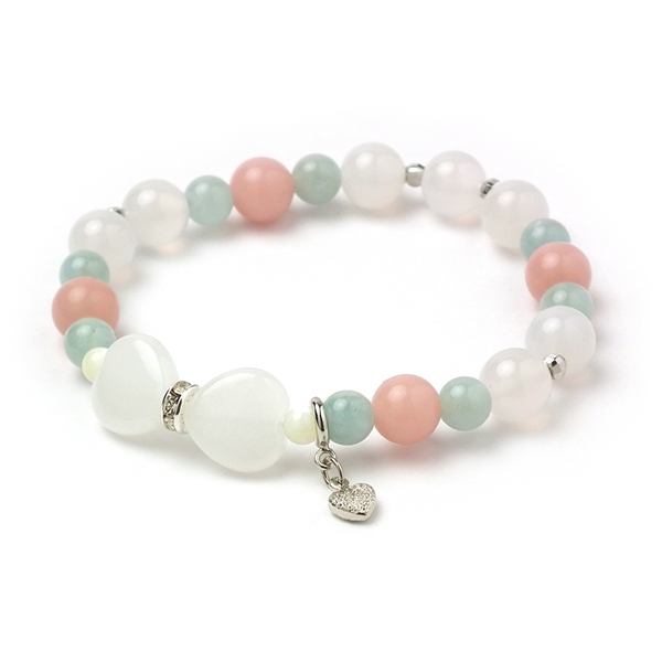 ピンクタルク×アクアマリン×ホワイトアゲート 天然石 ブレスレット