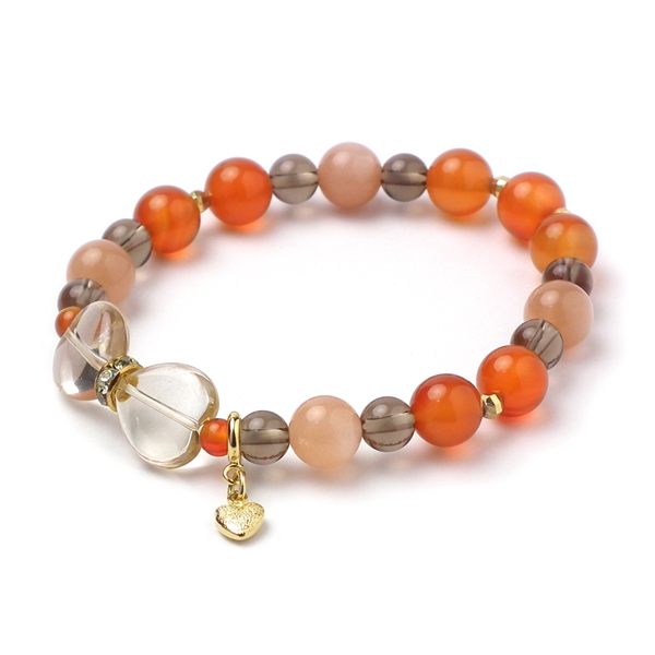 オレンジムーンストーン×スモーキークォーツ×カーネリアン 天然石 ブレスレット