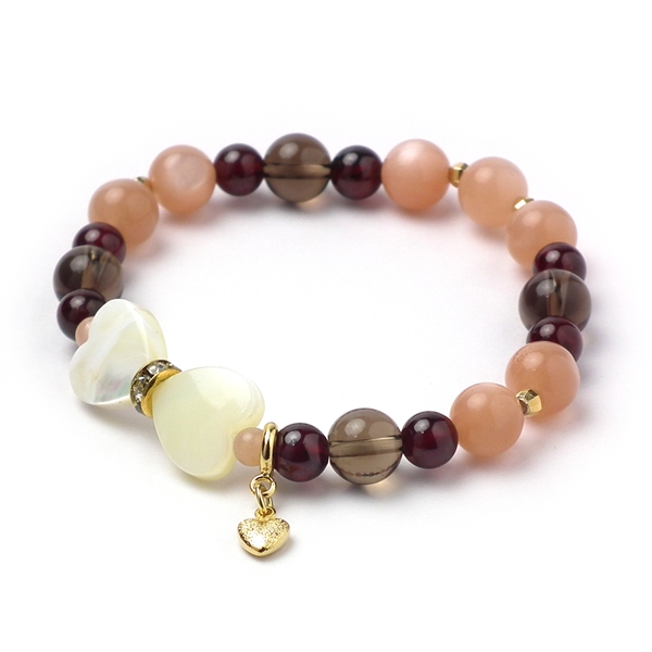 スモーキークォーツ×ガーネット×オレンジムーンストーン 天然石 ブレスレット