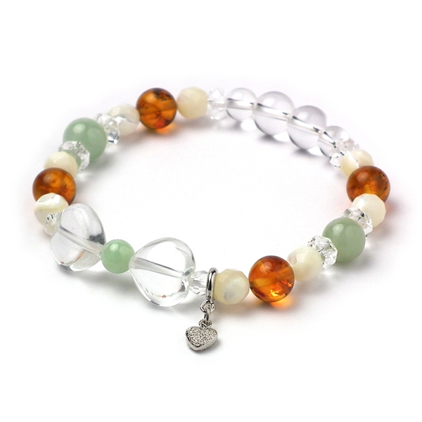 翡翠×アンバー×マザーオブパール 天然石 ブレスレット