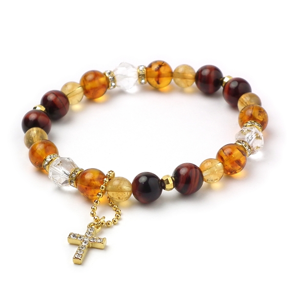 アンバー×シトリン×レッドタイガーアイ×水晶 天然石 ブレスレット