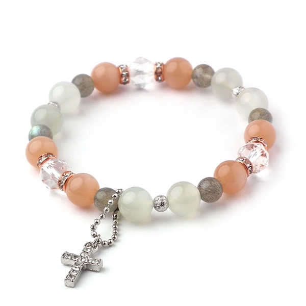 オレンジムーンストーン×ラブラドライト×シルバームーンストーン 天然石 ブレスレット