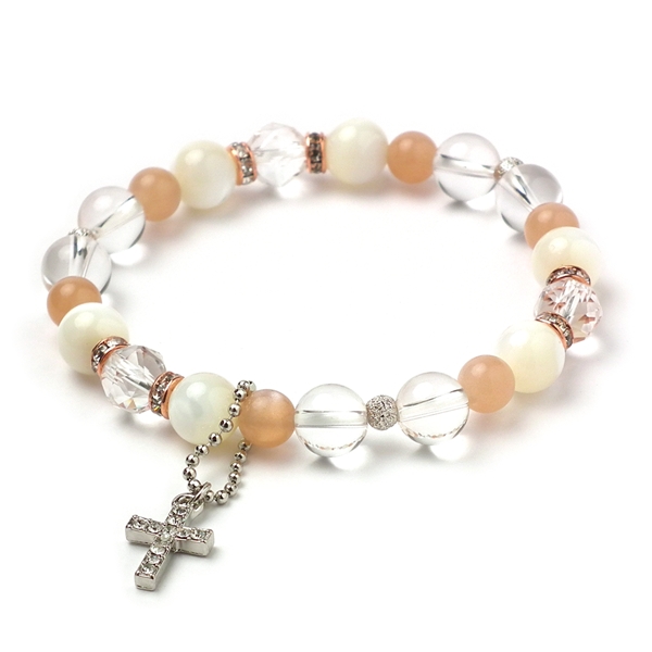 マザーオブパール×オレンジムーンストーン 天然石 ブレスレット