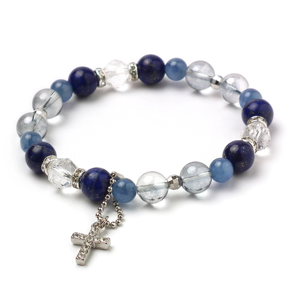 ラピスラズリ×カイヤナイト×水晶×オーラクォーツ 天然石 ブレスレット