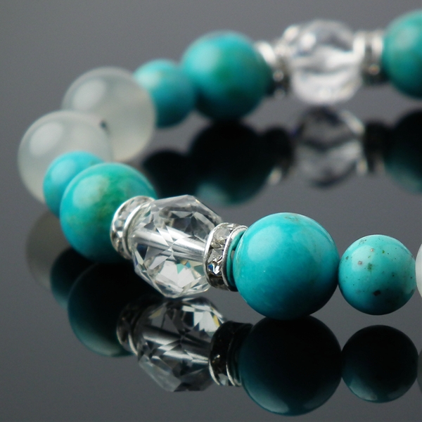 ターコイズ×シルバームーンストーン×水晶 天然石 ブレスレット