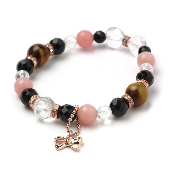 タイガーアイ×ピンクタルク×オニキス 天然石 ブレスレット