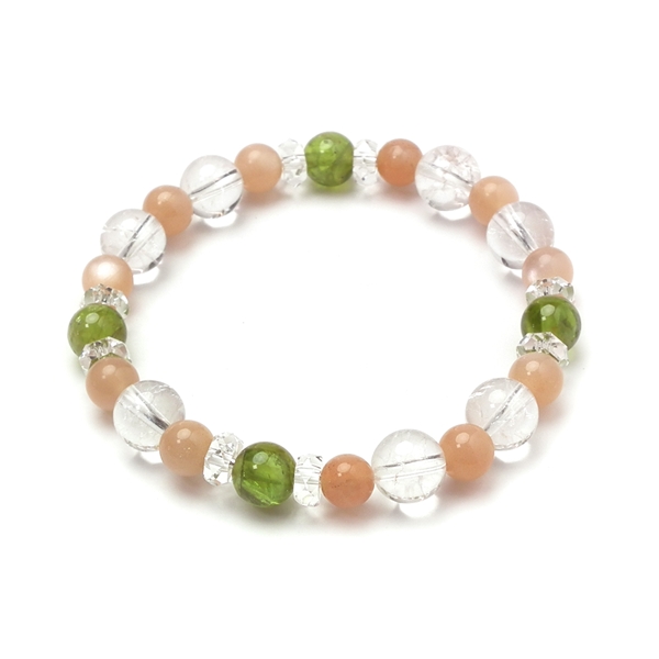 ペリドット×オレンジムーンストーン×クラッククリスタル×水晶 天然石 ブレスレット
