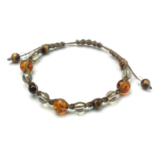 8ミリ玉のアンバーをメインに、タイガーアイとオーラクォーツを組み合わせた編み込みブレスレットです。透明感のある琥珀色、茶色のタイガーアイとほんのりシャンパンカラーのオーラクォーツの組み合わせで、落ち着いた色合いに仕上がりました。