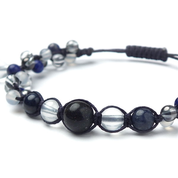 ブラックオパール×サファイア×ミルキークォーツ×ラピスラズリ 天然石 編み込みブレスレット