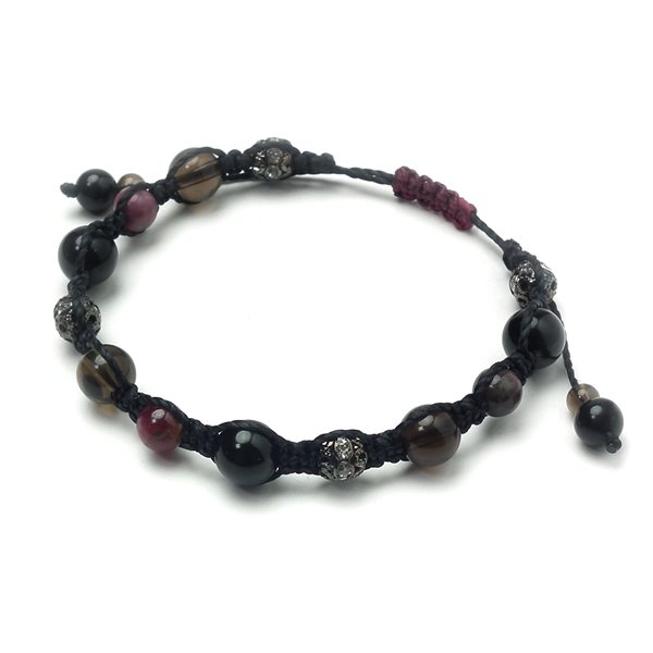 トルマリン×スモーキークォーツ×ブラックトルマリン 天然石 編み込みブレスレット