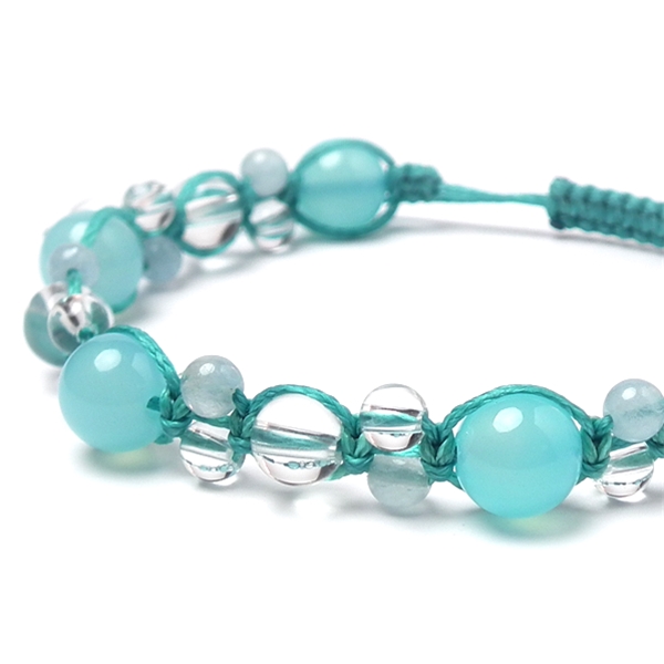 シーブルーカルセドニー×アクアマリン×水晶 天然石 編み込みブレスレット