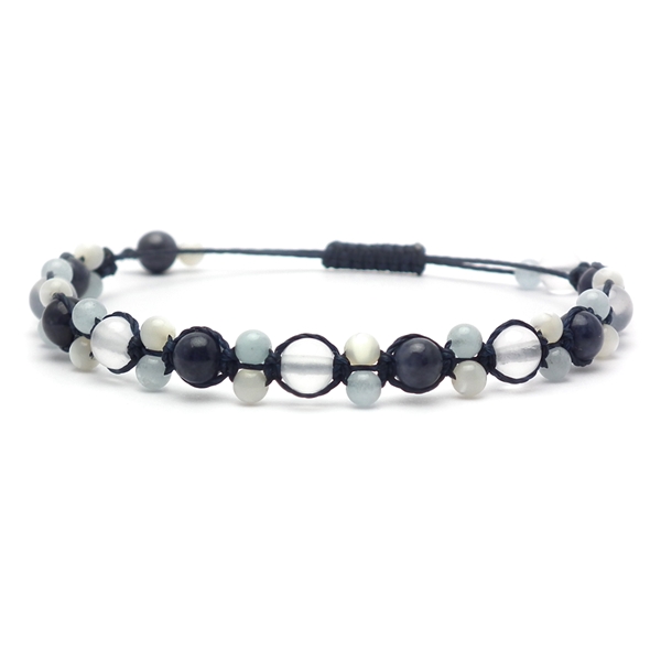 サファイア×アクアマリン×マザーオブパール×ミルキークォーツ 天然石 編み込みブレスレット