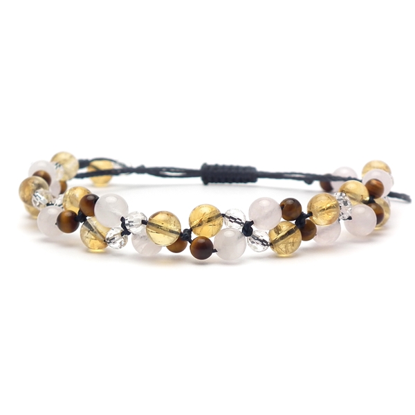 • シトリン×ローズクォーツ×タイガーアイ×水晶 天然石 編み込みブレスレット