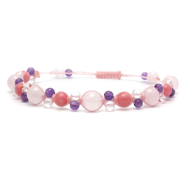 • インカローズ×アメジスト×水晶×ローズクォーツ 天然石編み込みブレスレット