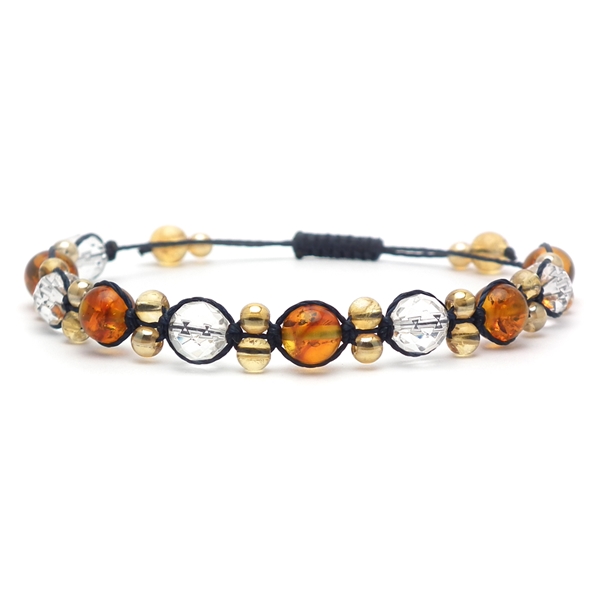 アンバー×シトリン×水晶×オーラクォーツ 天然石 編み込みブレスレット