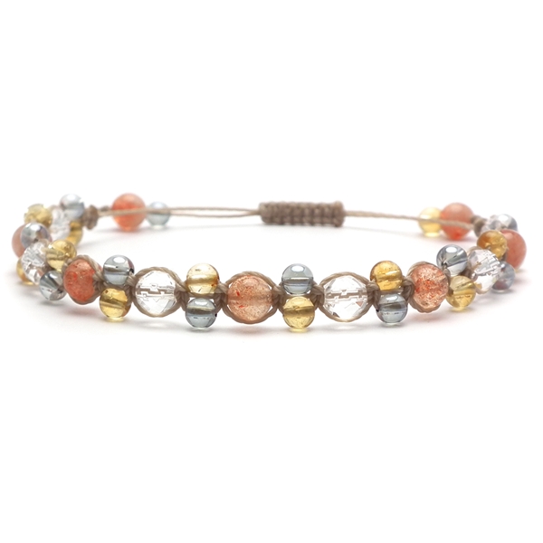 サンストーン×水晶×シトリン×オーラクォーツ 天然石編み込みブレスレット