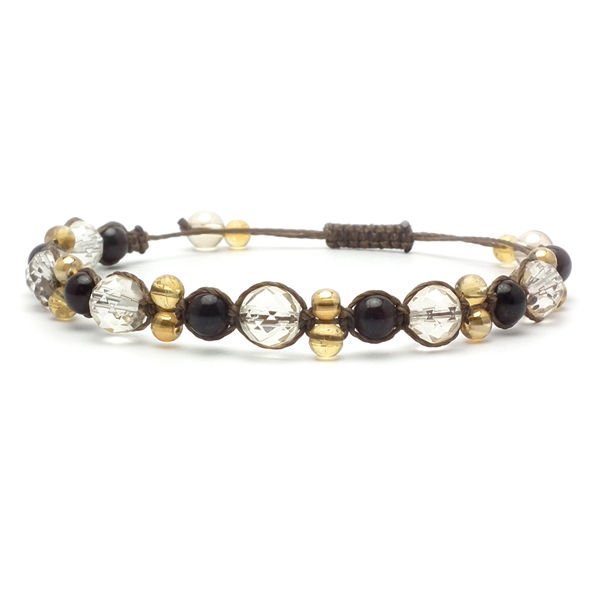 シャンパンカラークォーツ×ガーネット×シトリン×オーラクォーツ 天然石 編み込みブレスレット