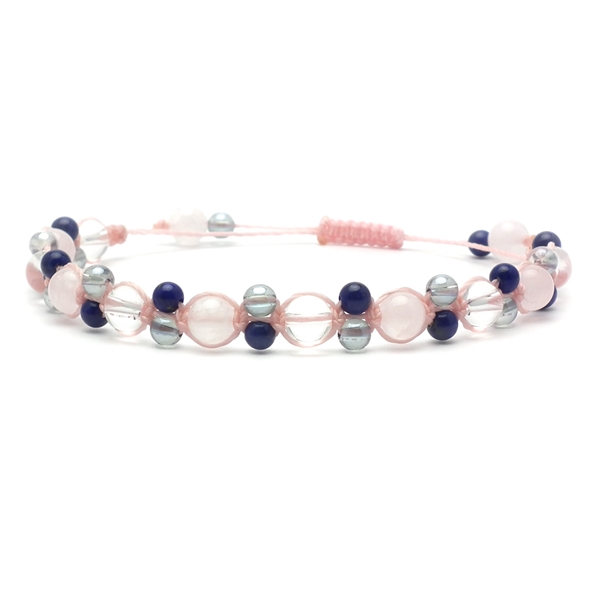 ローズクォーツ×ラピスラズリ×水晶×オーラクォーツ 天然石 編み込みブレスレット