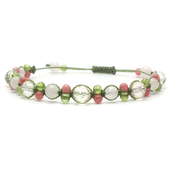 シャンパンカラークォーツ×ペリドット×インカローズ×ローズクォーツ 天然石 編み込みブレスレット