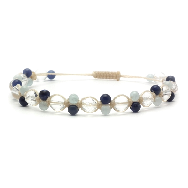 水晶×ソーダライト×アクアマリン 天然石 編み込みブレスレット